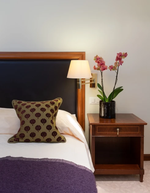 Generous windows offer views of the Corviglia and Piz Nair. The warm colours in these 35 to 40 m² rooms create a tranquillity that invites you to rest and relax. After an active day in the breathtaking nature of the Upper Engadine, you will want to come ‘home’.