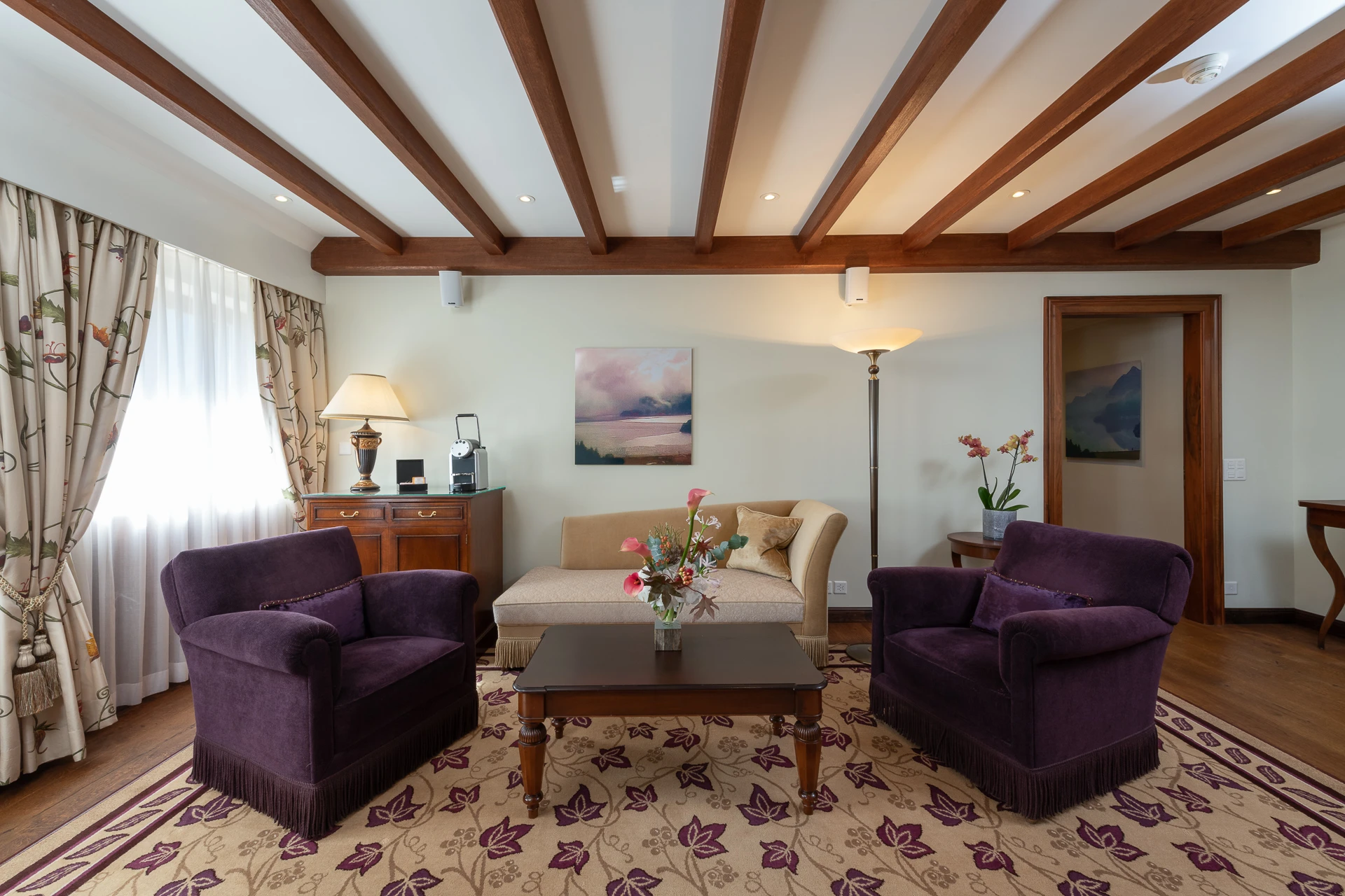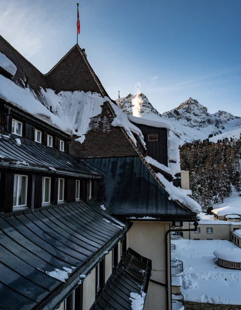 This 90 m2, charmingly furnished north-east-facing suite with a rustic beamed ceiling offers a magnificent view of the Corviglia skiing and hiking area. It has a spacious bed-sitting room with parquet flooring, a walk-in wardrobe and designer bathroom with free-standing bathtub and large shower with a view of the Suvretta slope.