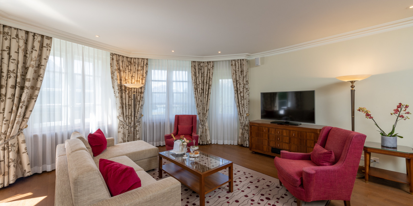 This approx. 130 m2, light-flooded and high-quality furnished 2-room south-facing suite offers a marvellous view of the lakes and mountains. It has a luxurious lounge, a spacious bedroom, two bathrooms including a separate walk-in shower and a large sun terrace.
