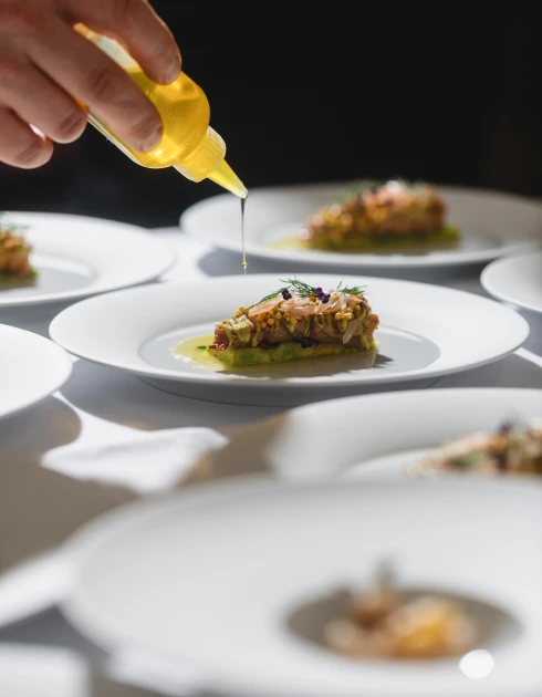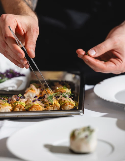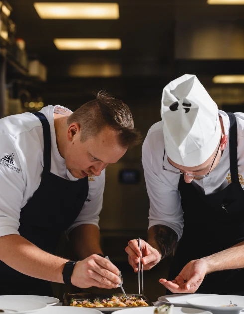 Den Küchen der Grand Hotels liegt eine ganz eigene Magie inne, besonders hier im Suvretta House. Die reich gefüllten Speisen und Kühlregale lagern alle Köstlichkeiten dieser Welt, welche darauf warten, von unserer Küchenbrigade zu kulinarischen Meisterwerken veredelt zu werden. Als Gast am Chef's Table können Sie das stets spannende, oftmals auch hektische Schaffen, direkt "am Pass" hautnah miterleben. Also jenem Ort, welcher im Küchenjargon dafür steht, wo die Gerichte von der Küche vom Service abgeholt werden.